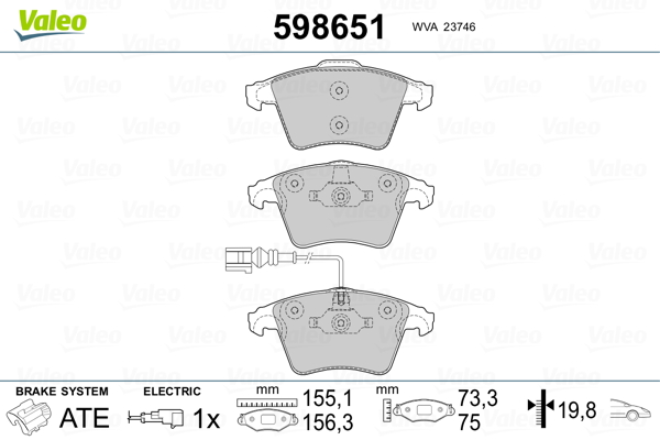 VALEO 598651 - Sada brzdových destiček, vždy 4 kusy v sadě