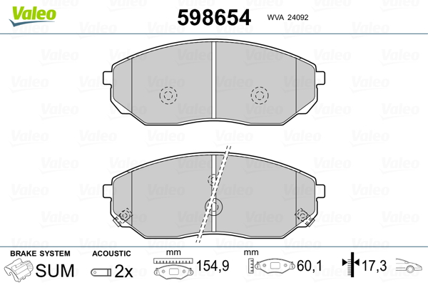 VALEO 598654 - Sada brzdových destiček, vždy 4 kusy v sadě