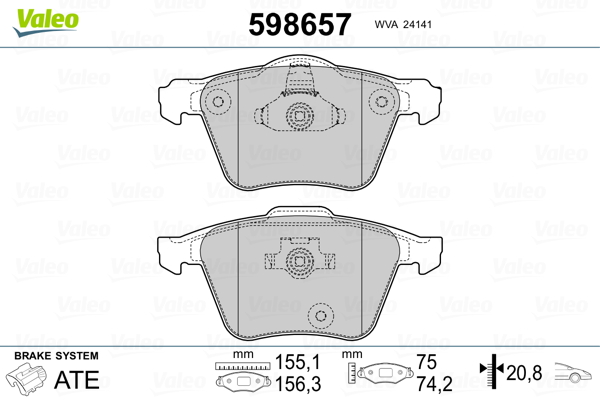 VALEO 598657 - Sada brzdových destiček, vždy 4 kusy v sadě