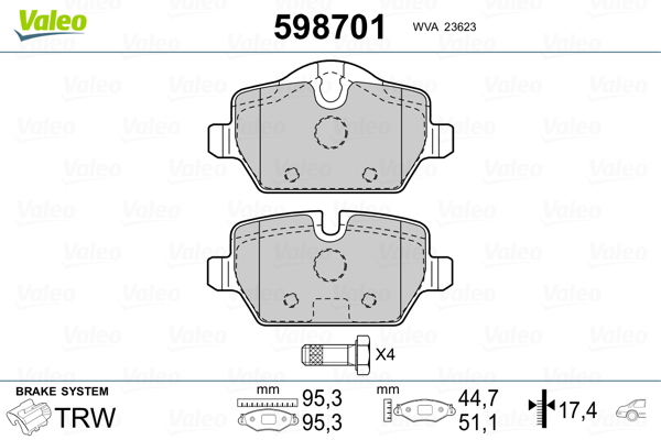 VALEO 598701 - Sada brzdových destiček, vždy 4 kusy v sadě