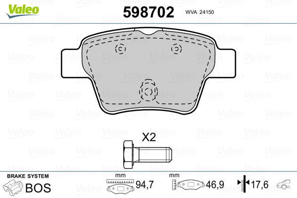 VALEO 598702 - Sada brzdových destiček, vždy 4 kusy v sadě