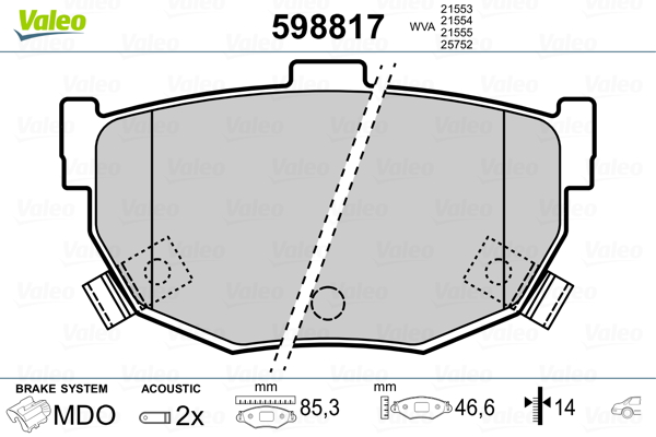 VALEO 598817 - Sada brzdových destiček, vždy 4 kusy v sadě