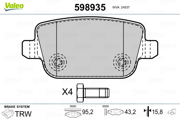 VALEO 598935 - Sada brzdových destiček, vždy 4 kusy v sadě