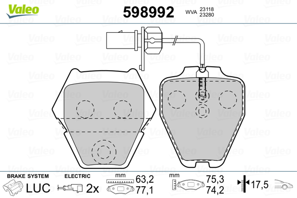 VALEO 598992 - Sada brzdových destiček, vždy 4 kusy v sadě