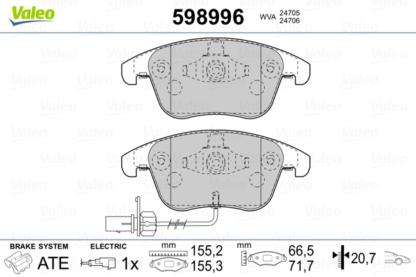 VALEO 598996 - Sada brzdových destiček, vždy 4 kusy v sadě