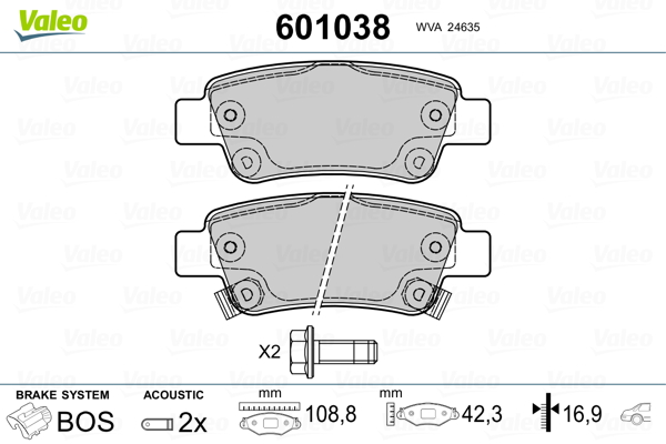 VALEO 601038 - Sada brzdových destiček, vždy 4 kusy v sadě
