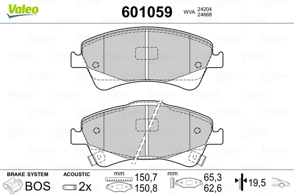 VALEO 601059 - Sada brzdových destiček, vždy 4 kusy v sadě
