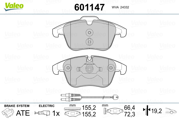 VALEO 601147 - Sada brzdových destiček, vždy 4 kusy v sadě