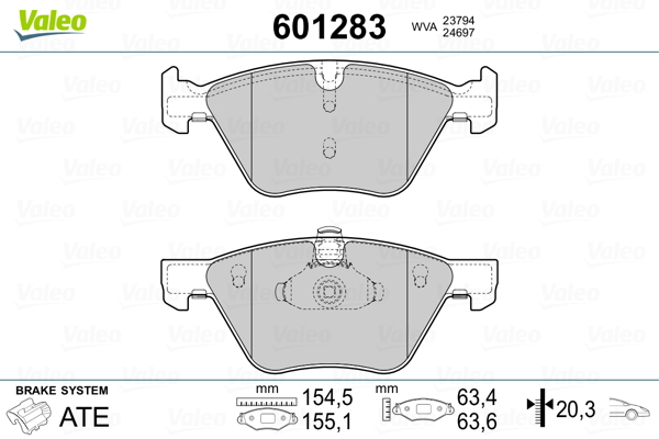 VALEO 601283 - Sada brzdových destiček, vždy 4 kusy v sadě