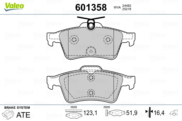 VALEO 601358 - Sada brzdových destiček, vždy 4 kusy v sadě