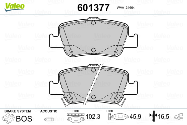 VALEO 601377 - Sada brzdových destiček, vždy 4 kusy v sadě
