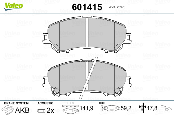VALEO 601415 - Sada brzdových destiček, vždy 4 kusy v sadě