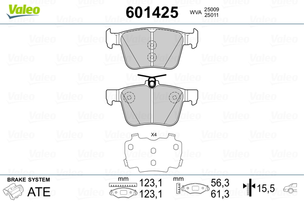 VALEO 601425 - Sada brzdových destiček, vždy 4 kusy v sadě