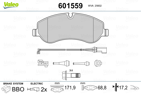 VALEO 601559 - Sada brzdových destiček, vždy 4 kusy v sadě
