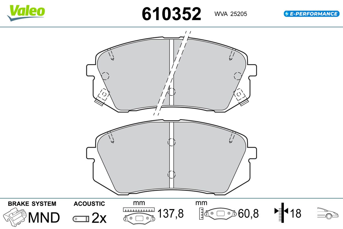VALEO 610352 - Sada brzdových destiček, vždy 4 kusy v sadě