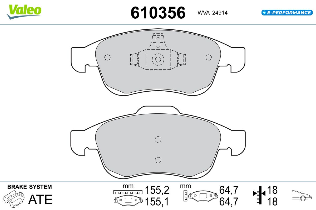 VALEO 610356 - Sada brzdových destiček, vždy 4 kusy v sadě