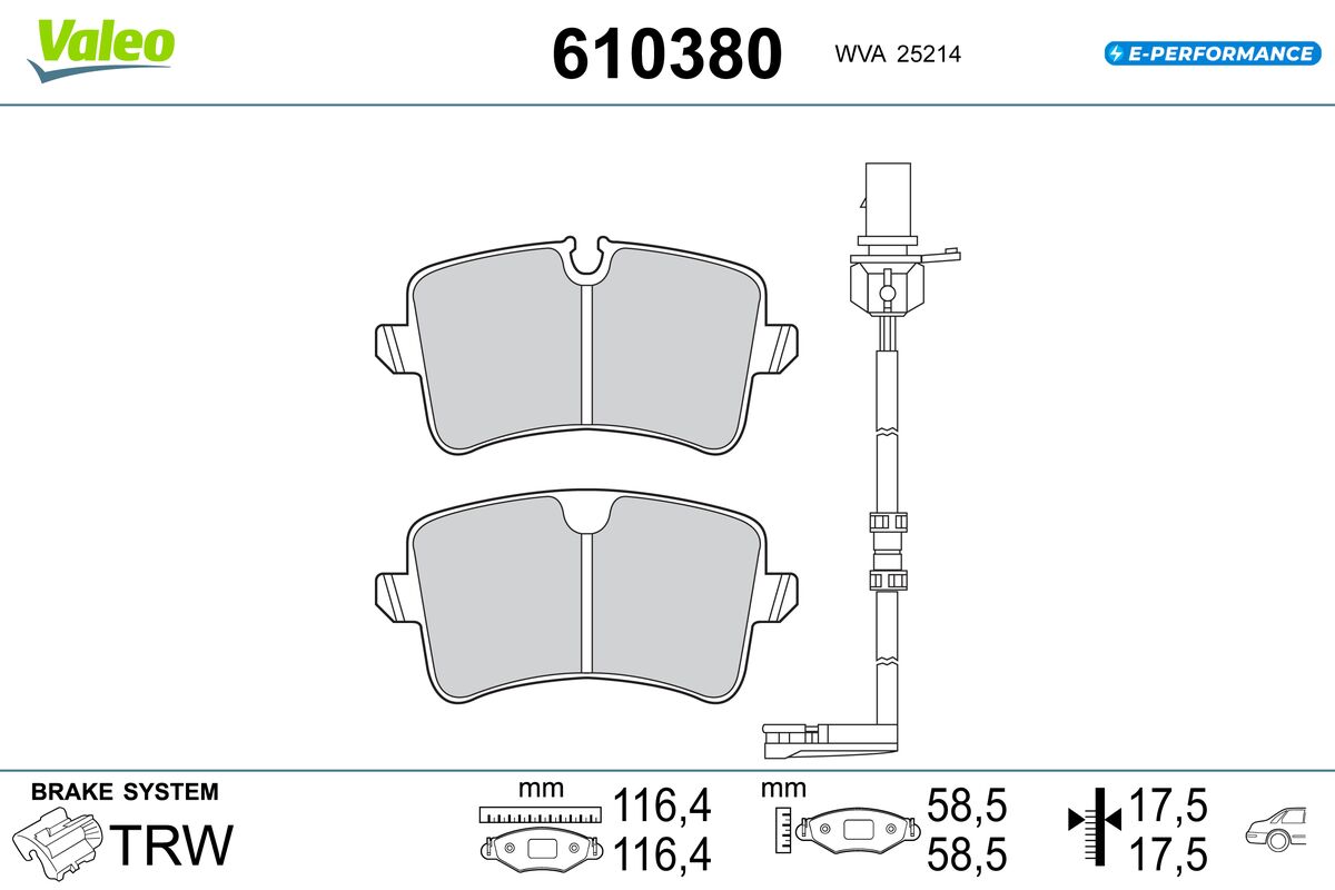 VALEO 610380 - Sada brzdových destiček, vždy 4 kusy v sadě