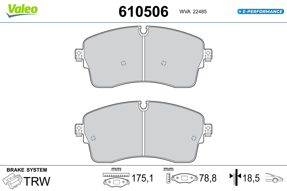 VALEO 610506 - Sada brzdových destiček, vždy 4 kusy v sadě