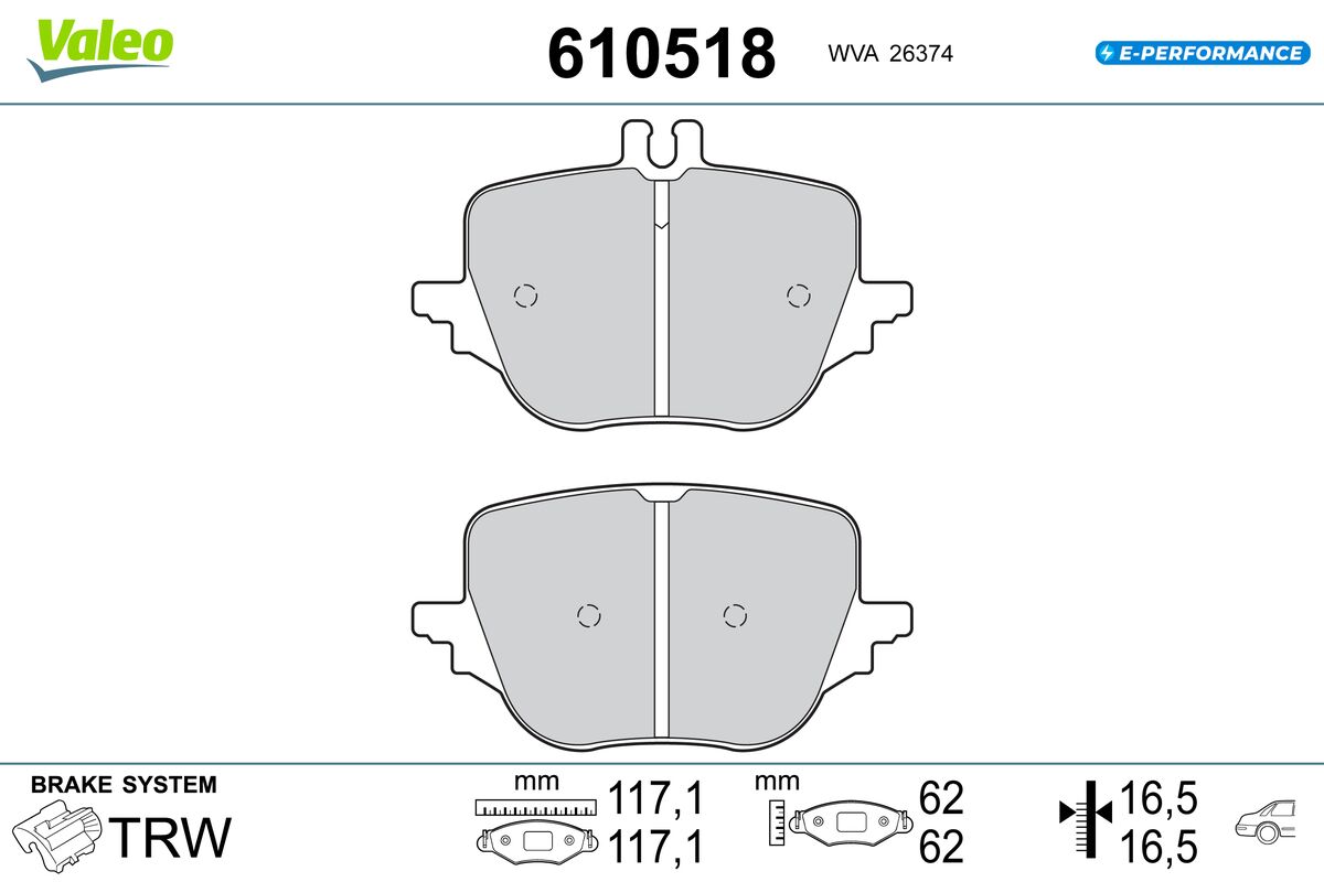 VALEO 610518 - Sada brzdových destiček, vždy 4 kusy v sadě