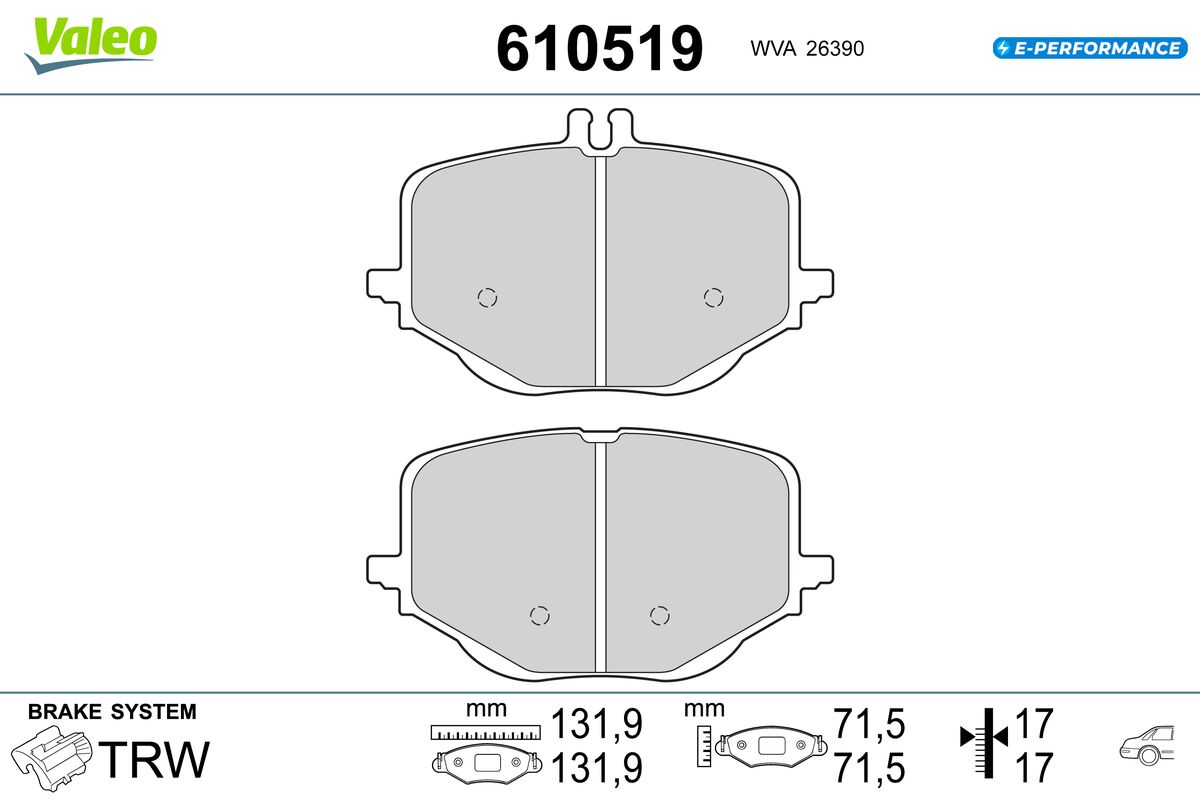 VALEO 610519 - Sada brzdových destiček, vždy 4 kusy v sadě
