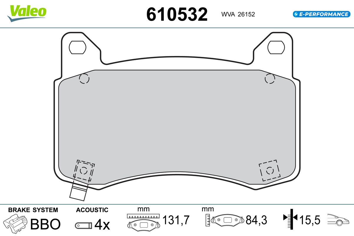 VALEO 610532 - Sada brzdových destiček, vždy 4 kusy v sadě