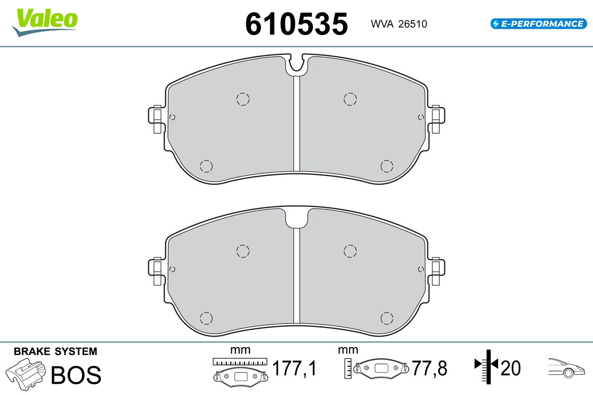 VALEO 610535 - Sada brzdových destiček, vždy 4 kusy v sadě