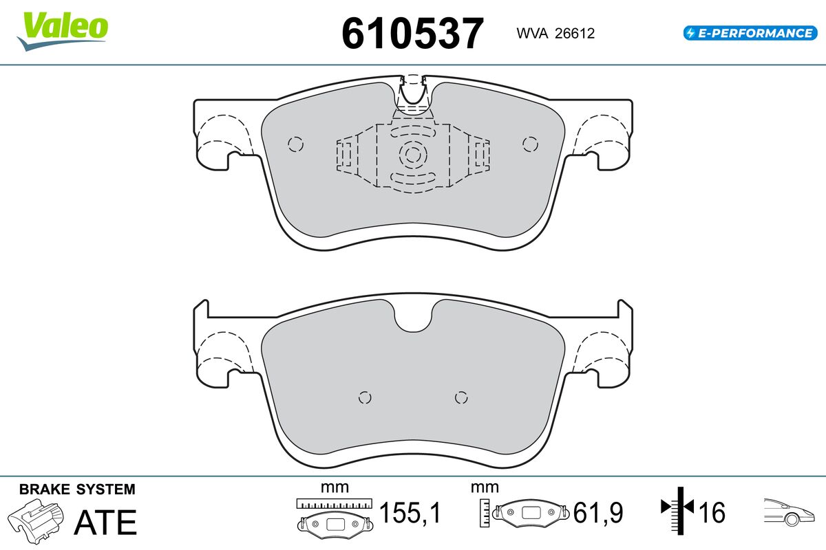 VALEO 610537 - Sada brzdových destiček, vždy 4 kusy v sadě
