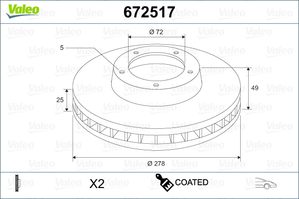 VALEO 672517 - Brzdový kotouč
