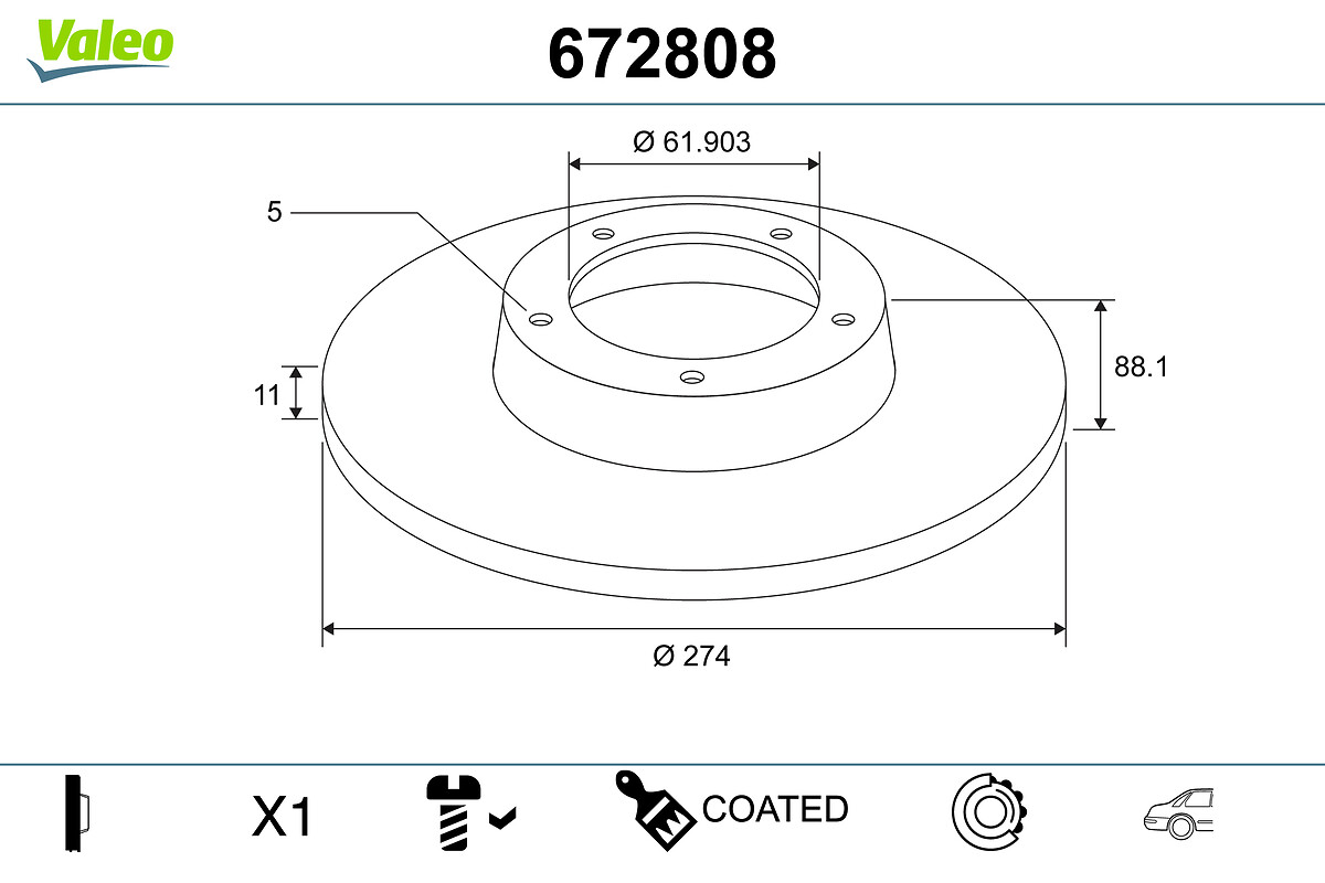 VALEO 672808 - Brzdový kotouč