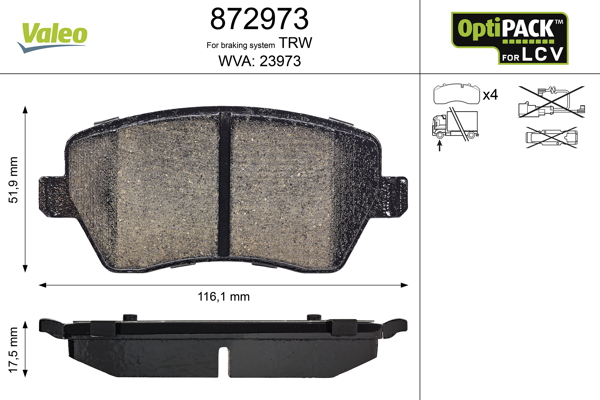 VALEO 872973 - Sada brzdových destiček, vždy 4 kusy v sadě