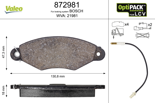 VALEO 872981 - Sada brzdových destiček, vždy 4 kusy v sadě