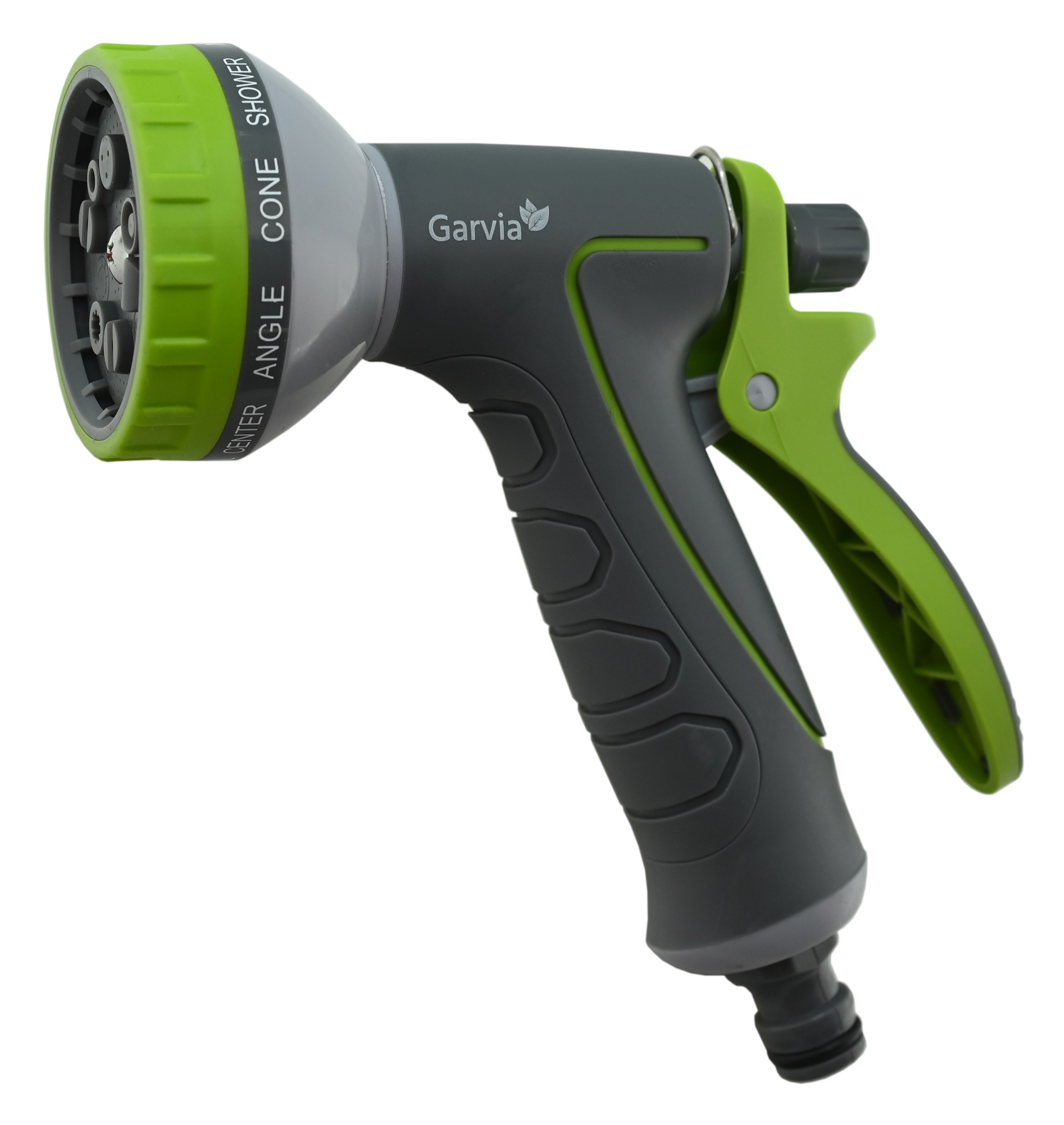 Pistole umožňuje výběr z 10 různých typů zavlažování otáčením čelní části (oplach, vertikální postřik, středový postřik, rozstřik pod úhlem, kuželový postřik, sprcha, vodní mlha, silný proud, plochý proud, smáčení). Rukojeť je opatřena spouští, díky které lze individuálně dávkovat vodu, bez plýtvání. Zároveň je možné zajistit, použitím západky, nepřetržitý průtok. Průtok samotný lze regulovat otočným prvkem na spoušti.