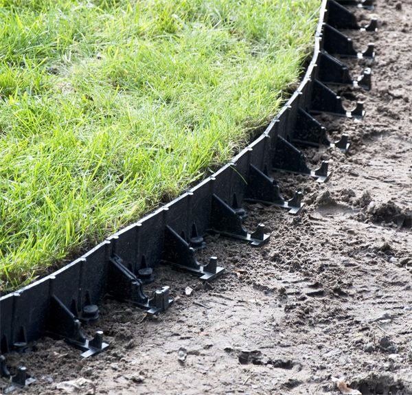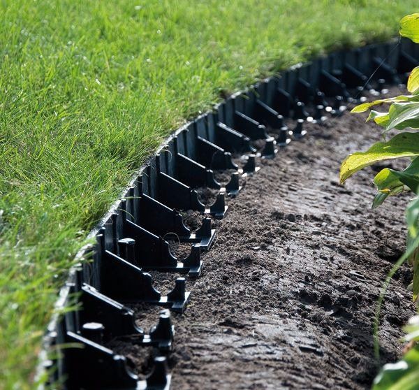 Neviditelný plastový obrubník oddělí trávník a záhon s mulčovací kůrou, trávník a kamínkový (štěrkový) záhon, trávník a zámkovou dlažbu, betonové plochy, chodníky, terasy nebo třeba okapové chodníčky. Plastový obrubník lze tvarovat do různých oblouků nebo ho stočit do kruhu například kolem stromů. Instaluje se pod rovinu terénu, tak aby bylo vidět cca 5 mm z jeho vrchní stěny. Pokud oddělujete dlažbu nebo chodníky, zvolte výšku obrubníku alespoň takovou, jaká je výška dlažby. Obrubníky se uchycují pomocí 25 cm dlouhých plastových hřebů (standardně nejsou součástí balení). Na 1 metr obrubníku jsou potřeba 2–3 kotvy (podle tvarové složitosti), v případě prudkých oblouků