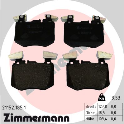ZIMMERMANN 21152.185.1 - Sada brzdových destiček, vždy 4 kusy v sadě