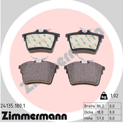 ZIMMERMANN 24135.180.1 - Sada brzdových destiček, vždy 4 kusy v sadě