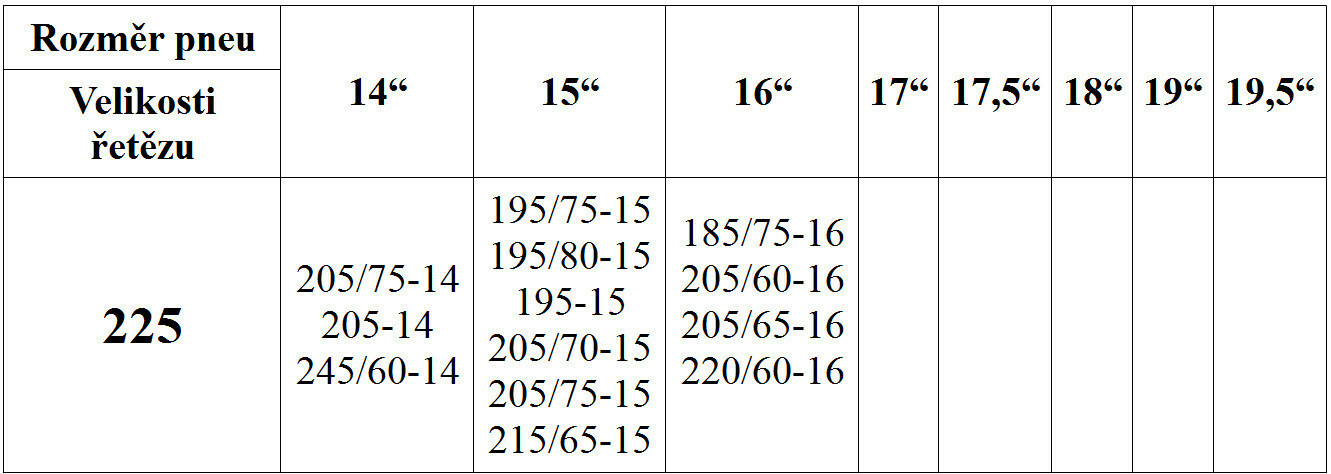 Tabulka použití sněhových řetězů SUV-VAN ke stažení zde (formát PDF).